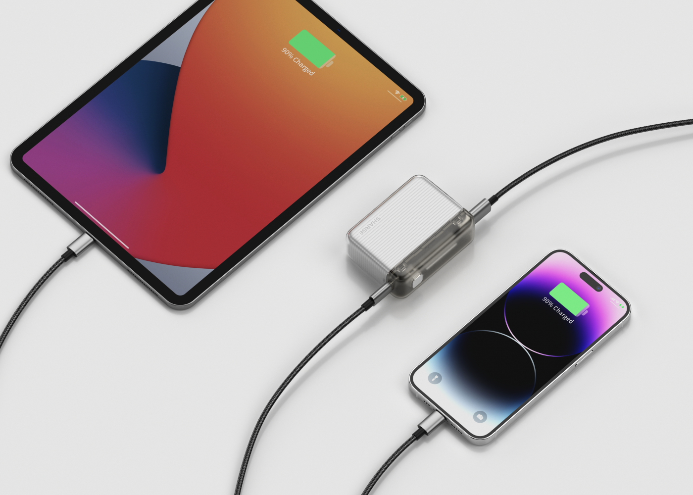 2 ports to charge 2 devices at once. Compatible with smartphones, iPads, Switch, etc.