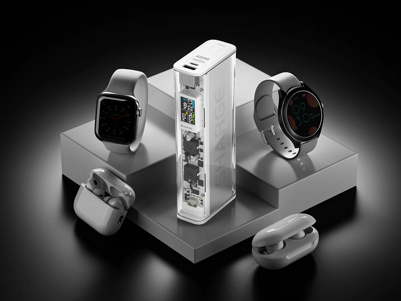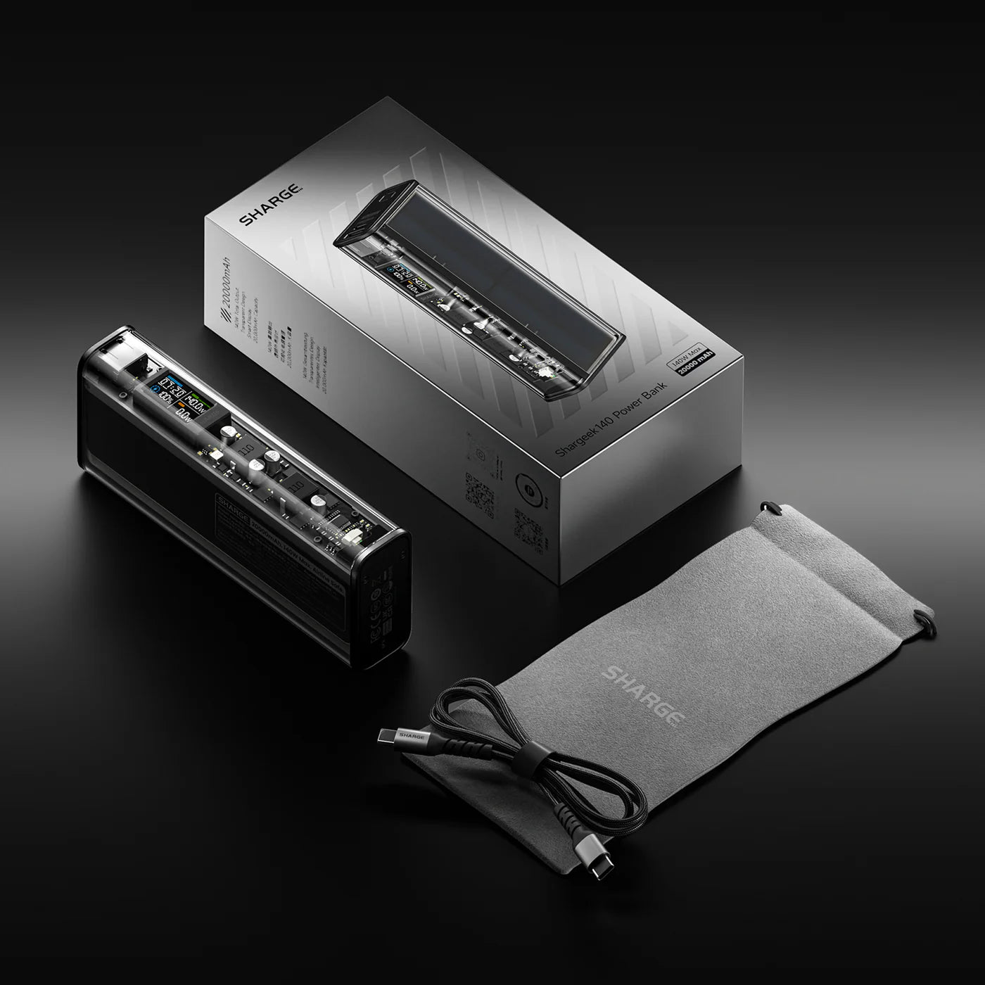 Embodying our signature transparent design, Shargeek 140 now comes with black/white monochromatic aesthetics. Crafted through CNC machining and anodization processes, it exudes exquisiteness and uniqueness.