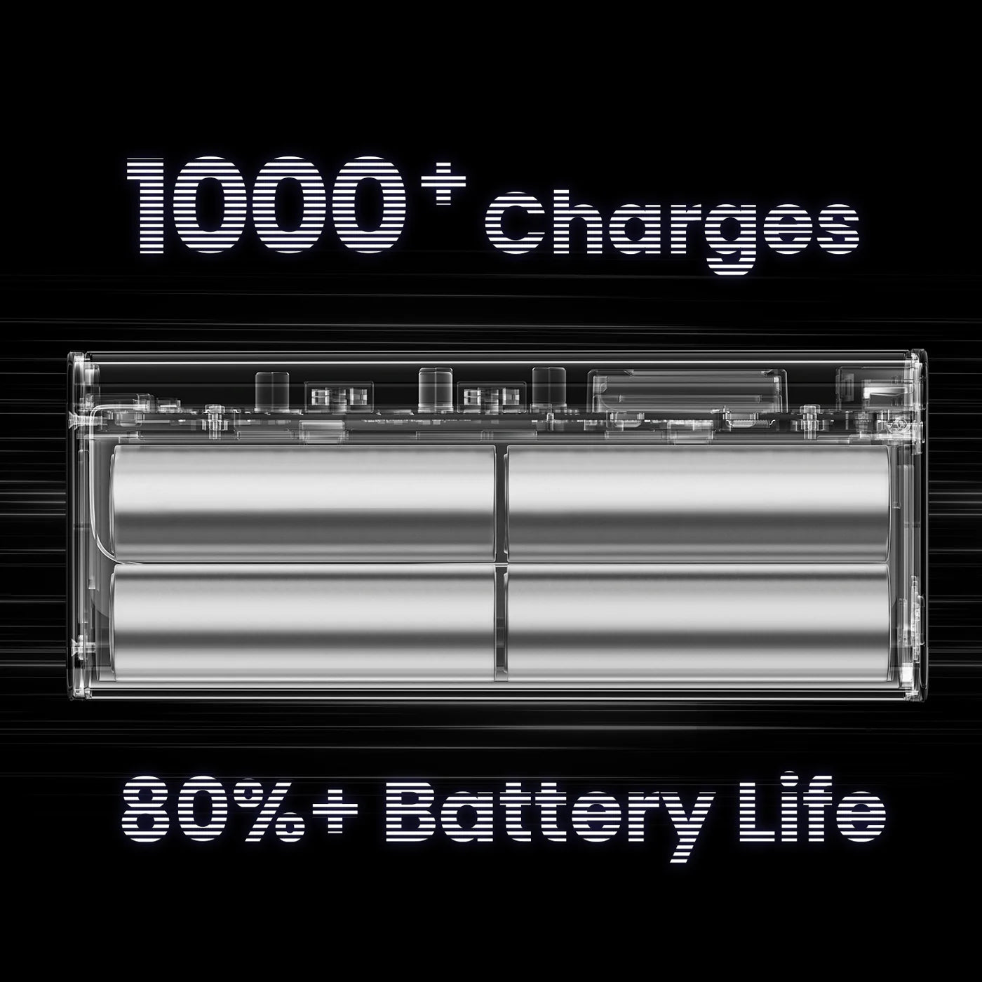 Maintains 80% capacity after 1000+ cycles, while other power banks degrade heavily after only 300 cycles.