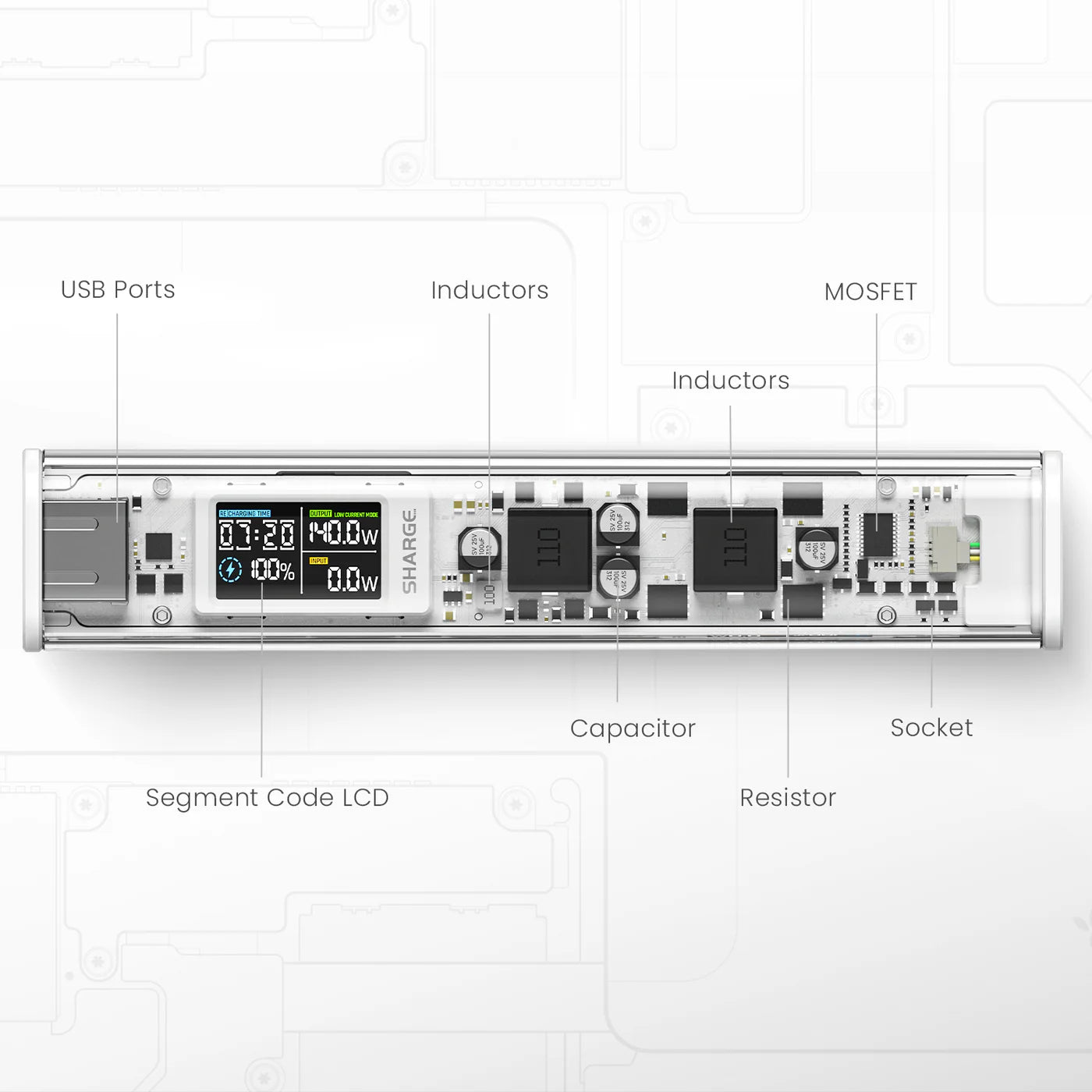 Shargeek 140 uses an integrated circuit board design. Every electronic component's placement is meticulously considered. Facilitates safer and more reliable circuit operation.