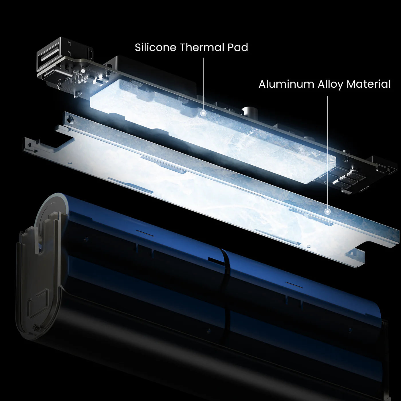 With a spacious aluminum alloy frame and high-performance thermal silicone pad, the cooling system accelerates heat dissipation and facilitates stable high-speed charging even during intense usage.